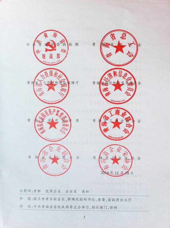 由省委统战部、省总工会等8家单位联合组织开展的"青海省优秀企业、企业家"评选表彰活动,经过多重、严格评审,青海省williamhill官网总公司荣获"青海省第七届优秀企业"称号。集团及所属各公司将继续发扬成绩、再接再厉,进一步发扬改革创新精神,不断开拓市场,攻坚克难、脚踏实地、真抓实干,为实现williamhill官网科学稳健发展做出新贡献。