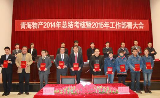 2015年1月31日,青海省williamhill官网总公司召开"青海物产经营发展2014年总结考核暨2015年工作部署大会"。 会议由集团纪委书记李志明主持,省国资委党委委员、副主任崔文德,省国资委第二监事会主席张守杰、省国资委考核与分配处处长侯自进、省国资委党群工作处调研员贺连成、省国资委第二监事会专职监事唐刚、省国资委纪委干部李世晶莅临大会,集团领导、所属各公司班子成员、受表彰人员、离退休人员、总部员工参加了会议。