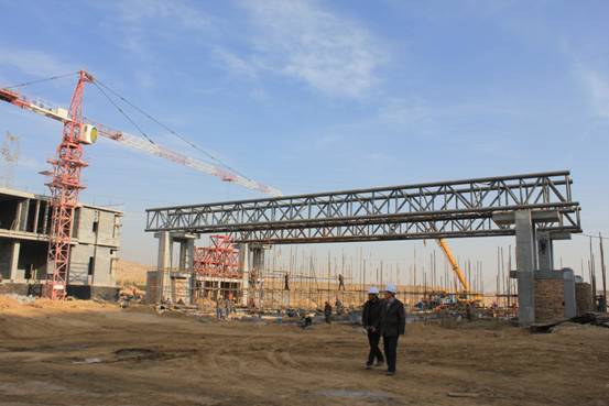 冬日的施工现场上阵阵机器轰鸣,一片繁忙景象,抢工期、赶进度、保质量,工程项目建设如火如荼。王黎明副省长每一次莅临曹家堡保税物流中心保税核心区施工现场,都仔细关注着工程新的进展带来的新的变化。
