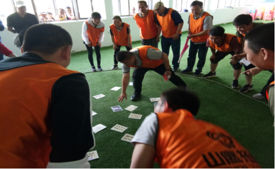通过系列游戏导入拓展理念,同时建立团队、选举队长、编队歌、取队名、定队训、绘队旗、做团队雕塑,做文化展示。队员在精神整装和团队建立时充满信心和激情的表现,体现出青海物产汽贸团队已整装待发、破冰起航。