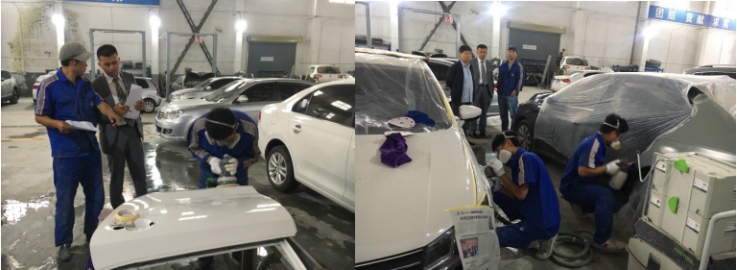 考核中,根据实际情况设置了两大项、八个小项的考核内容。即:汽车漆工腻子刮涂与打磨。重点从工件清洁、除油、除旧漆、打磨羽状边;工件清洁后刮涂腻子;打磨腻子;工具、设备使用是否正确准确,安全操作方面和习惯性错误操作;人员着装、精神面貌、安全防护、整理现场5S作业等八个方面进行了考核。考核小组成员认真评判、打分,现场进行点评指导。
