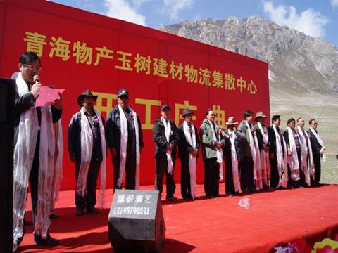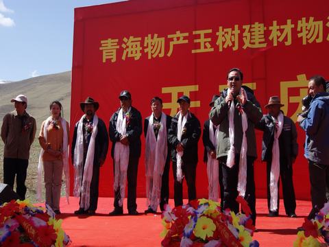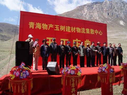 王总在开工仪式上讲道:"地震摧毁了美丽的玉树,但我们要从废墟中挺立起来,用自己勤劳的双手,去建设一个更加美丽、更加富饶、更加和谐的社会主义新玉树。"这是党和政府的嘱托,也是灾区人民殷切的期盼。作为省内长期从事生产资料流通的大型国有企业,我司有责任、有义务,发扬一方有难,八方支援,团结互助,共克时艰的精神,积极投身到玉树灾后重建工作中去。我司在中标政府采购的2万吨钢材和2.1万立方米木材的基础上,再投资2600万元建设青海物产玉树建材物流集散中心,我们将在最短的工期内,用科学、绿色的施工方法将建材物流集散中心建成使用,并在未来3年时间内,完成玉树灾后重建所需的包括钢材、木材、陶瓷建材、装饰建材等物资的供应配送,为相继开工的各个建设项目,提供源源不断的建筑材料物资保障。为建设一个更加美丽、更加富饶、更加和谐的社会主义新玉树奉献我们青海物产人的力量。