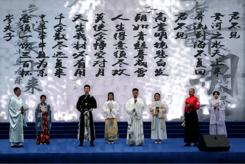 青物书院为搞好此次活动,确保节目精益求精,组织集团系统职工高凯、郭宇、阿柏林、任蕊、王思涵等8名员工排练了富有特色的诗乐鸣响《将进酒》。在演出现场,悠扬婉转的古筝配上铿锵有力的诵读,将诗仙李白的传统经典赋予了新的形式,焕发出新的光彩,将活动现场推向了高潮,现场掌声雷动,展现出了青海williamhill官网职工奋发向上的精神风貌,塑造了青海物产书香企业的良好形象。