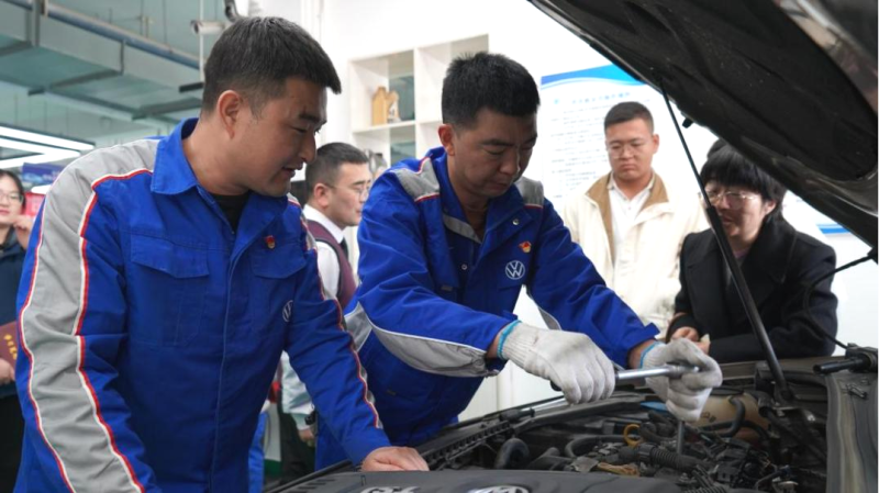 在汽车维修现场,汽贸公司“售后服务党员突击队”为交通运输学院老师的车辆做了全方位、专业的汽车保养售后服务。一张“检查安全维护十二项”的保修单就是公司开展“上门服务”的“清单”,逐一列上了车辆维修保养的详细内容和对客户的承诺,还帮助客户将以后用车中的注意事项做了全面梳理。由于这次服务对象,都有一定的汽车专业性知识储备,所以在边做维修服务的同时,工匠们与老师们交流了各品牌车辆的保养、检测、改装等方面的内容,对今后的工作方向有了新的思考。