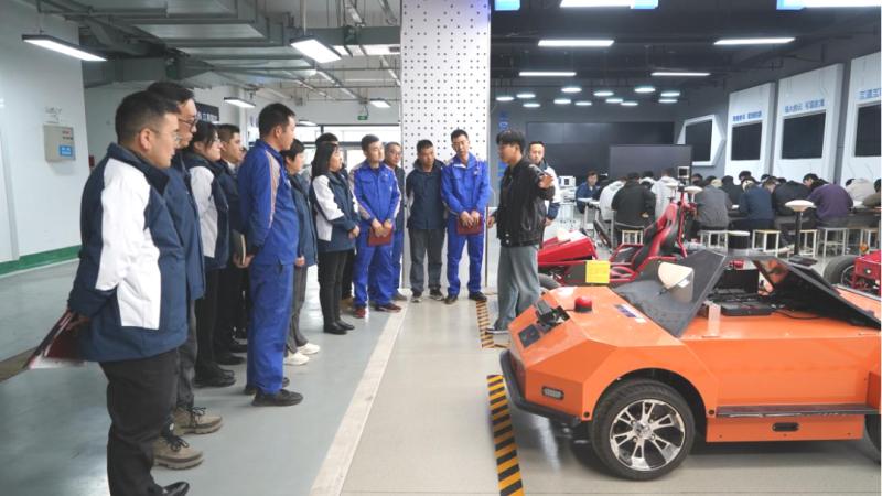 在参观比亚迪E5纯电动车实训区时,大家看到了学院2023年全国行业职业技能大赛二等奖作品的技术“含金量”,饶有兴趣地了解了绘图-备材-制作-成型的具体过程,以及对转动、逃生、行驶、焊接、拆装、车架与车身的测试。高校的科研成果凝聚了工匠精神传承和“惟专惟精、匠人匠心”的人才培养理念,在提升职业道德修养、增强专业技术能力、发展创新创业能力等方面全面融入了工匠精神培育。在场的党员仔细观摩,向创作单位投以敬佩的眼光。双方在“工匠精神是培养高素质技术技能人才的目标导向,是推动产教融合、校企合作的重要实践途径”达成共识。