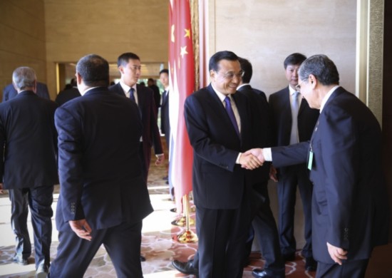 李克强与埃及代表团成员握手