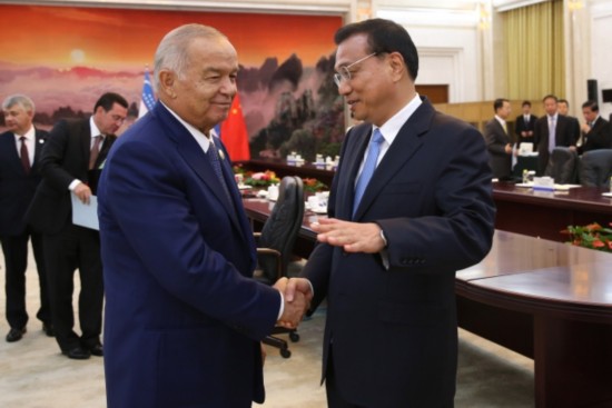 李克强总理会见乌兹别克斯坦总统卡里莫夫时说:"中乌可以在双方感兴趣的领域广泛开展产能和装备制造业合作。"