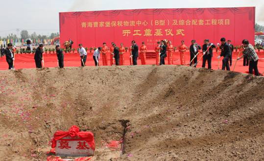 附: 7月22日上午11时,青海省工业"双百"行动重点项目和2012年青海省固定资产投资重点项目--青海曹家堡保税物流中心(B型)及综合配套工程项目开工奠基仪式在海东工业园区临空综合经济园盛大举行。开工典礼现场锣鼓喧天,彩旗飘扬,气氛热烈。
